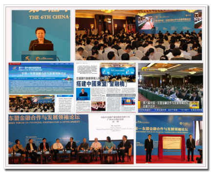 借助2014年9月举行的“第11届中国—东盟博览会”平台,广西自治区人民政府、中国金融学会、中国银行业协会等单位联合举办了“第6届中国—东盟金融合作与发展领袖论坛”,来自全球20多个国家和地区的124家机构的310名代表参加了论坛。论坛顺应了我国与东盟国家经贸往来日益密切的形势和要求,以“跨境人民币业务创新”为主题,有力地扩大了人民币在东盟国家中的影响力,社会反响强烈。