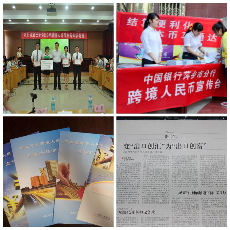 人行南昌中支抓住今年是跨境人民币业务开展5周年的契机,围绕服务江西大开放、促进中部崛起主战略,组织了一系列的跨境人民币业务宣传推介活动,有效地提升社会主体对跨境人民币业务的认知度、参与度和积极性,推动全省跨境人民币业务持续健康快速发展。