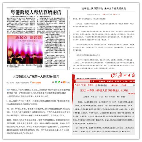 为推动跨境人民币业务进一步发展,人行广州分行于2014年秋季广交会期间在广州举办了主题为“新起点 新跨越”的跨境人民币业务政策宣讲会。交通银行首席经济学家连平、香港恒生银行经济研究及人民币业务策略主管严剑文应邀作演讲。广州地区各银行金融机构代表、第三方支付机构代表、外贸企业及新闻媒体共600余人参加了宣讲会。