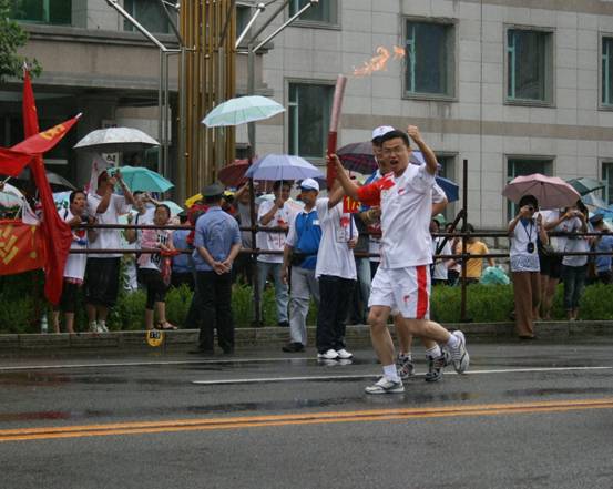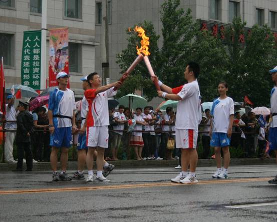 人民银行员工樊铁锟参加吉林延吉市奥运火炬传递