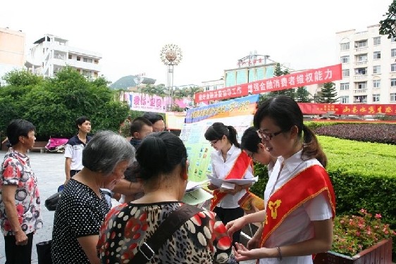 10余名团员青年充分结合自己的专业特长和工作技能开展宣传,让社会公众了解金融消费者在购买金融产品或接受金融服务中的相关权利、义务和风险。本次活动得到上级行的关注,南宁中支苏阳副行长在河池市委市政府领导陪同下亲自到现场检查指导宣传活动,河池电视台等新闻媒体也对活动进行了专题报导。通过开展“金融知识进社区”系列活动,不仅锻炼了青年队伍,而且深入社区宣传金融知识,提高了社会公众的金融维权意识,推动辖区金融消费者权益保护工作向纵深发展。