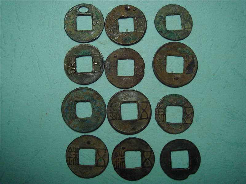 西汉末年,王莽执政,建立了“新”朝政权。这一时期是中国货币制度极其杂乱的时代。王莽幻想恢复上古时代的制度。在货币制度上也是如此。从公元7年摄政到新莽统治,十余年间,竟然进行了四次币制改革。第一次在居摄二年,以错刀、契刀、大泉五十,与五铢并行。规定“大泉五十”一枚值五十枚五铢钱,“契刀五百”值五百枚五铢钱,“一刀平五千”值五千枚五铢钱。但是“大泉五十”公重约7克,“契刀五百”只有16克,“一刀平五千”也不过30克,王莽的这几种货币的名义价值比实际价值高几十乃至几百倍,是中国货币史上第一种虚值大钱;第二次在始建国元年,废错刀、契刀、五铢,以小泉直一与大泉五十并行;第三次,在始建国二年,行宝货制,共有五物六名二十八品,名目等级繁杂,造成币制混乱;第四次在天凤元年,罢大小钱,更行货币、货泉。王莽的币制改革将早已淘汰的原始货币龟、贝、布币恢复使用,是一种违反经济规律的倒退行为,朝令夕改,货币种类繁多,相互间的比价又不合理,造成严重的通货膨胀及社会动荡,最终激怒百姓揭竿而起,推翻了新莽王朝。王莽的币制改革虽然荒唐,但铸币品种繁多、式样奇特、铸式精美,如著名的“金错刀”上“一刀”两字是黄金镶错的,工艺水平很高,王莽钱的文字书法称为“悬针篆”,形容其篆字尖细如针,在钱币收藏界享有盛誉。