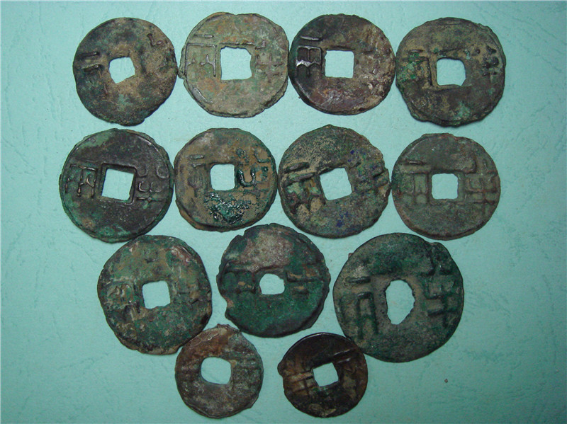 东汉(公元25——220年)东汉初年使用王莽货泉,到光武帝建武十六年(公元40年)刘秀才复行五铢钱。刘秀的五铢钱世称“建武五铢”或“东汉五铢”,铸工比较精美,通行时间很长。在此之前,淮阳王刘玄曾铸过五铢,世称“更始五铢”。公孙述则在四川铸过铁五铢钱。东汉后期币制混乱,出现剪边五铢和“蜒环钱”就是五铢钱被剪凿后的剩余部分和外廓,这说明当时经济的衰败和货币流通的恶化。中平三年(公元186年)又铸四出五铢。(“四出五铢”因其钱背穿孔有四道与边郭相连而得名)汉政权最后一次铸钱则是董卓初平元年(公元190年),熔毁五铢及长安铜人、铜马铸的小钱。
