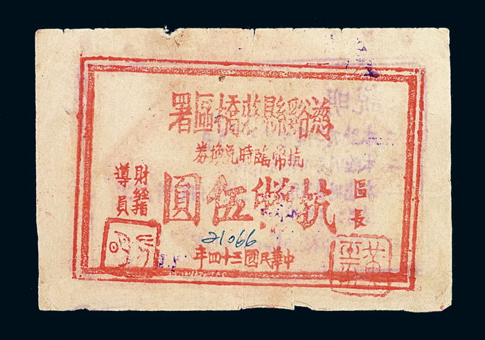 1937年7月7日“卢沟桥事变”后,中共和国民党联合抗日,我八路军和新四军挺进敌后,开辟了大片敌后根据地,建立了抗日民主政权。从1938年起,除中央所在地的陕甘宁边区外,又在华北敌后先后建立了晋察冀、晋冀鲁豫、晋绥、山东等抗日根据地;在华中先后建立了苏北、苏中、浙东、皖中等8个抗日根据地;在华南建立了东江和琼崖抗日根据地。这些根据地为发展农业生产,防止和抵制敌伪钞的侵入和流通、保护根据地人民的财富,都分别设立了自己的银行,发行了货币。在抗日战争中,各根据地发行的货币,一般称为“抗币”或“边币”。