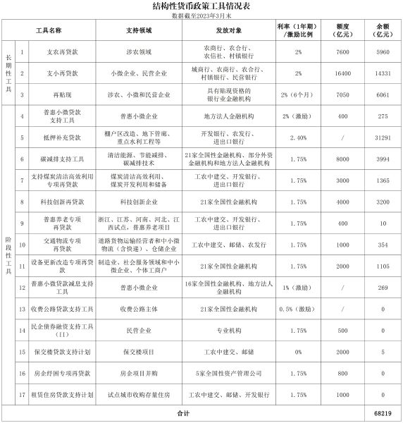 结构性货币政策工具情况表(截至2023年3月末)